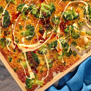 Crispy Parmesan Broccoli with Cheddar Sauce and Chili Crisp