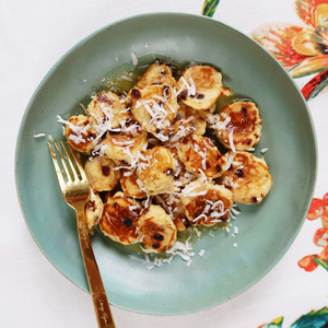 Chrissy Teigen’s internet-famous banana bread, but make it baby! This toddler-safe version of her viral recipe is made with fresh ripe bananas, yogurt, unsweetened shredded coconut, dates, coconut water and a hint of cinnamon for extra flavor. It’s so good, even parents can enjoy it (add ice before blending for adult consumption) along with baby!