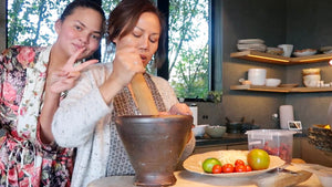 One of Chrissy’s all-time favorite kitchen gadgets for making a tedious task quick. With a garlic press, you don’t even have to peel the garlic—just put it inside the press, squeeze, and instantly minced garlic! This one even has a tool built-in to push out the papery garlic skin and anything that didn’t make it through the grates for easy cleanup.